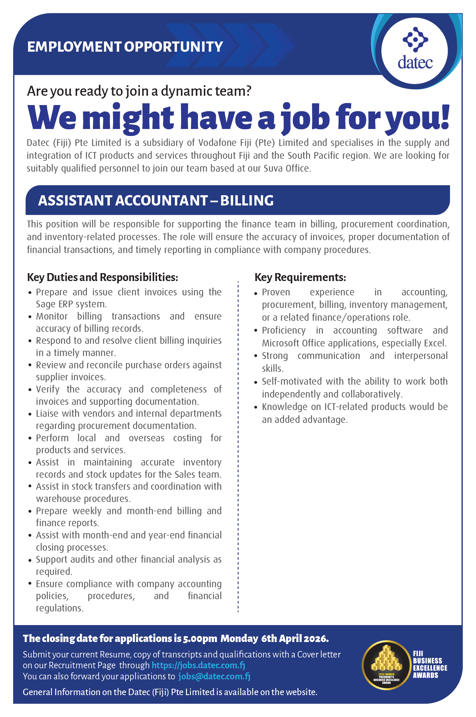 Call Us: +679 331 4411    Email Us: jobs@datec.com.fj