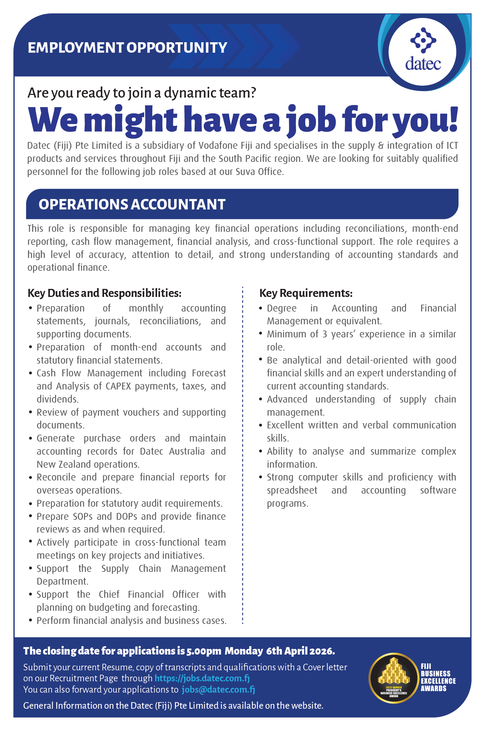 Call Us: +679 331 4411    Email Us: jobs@datec.com.fj