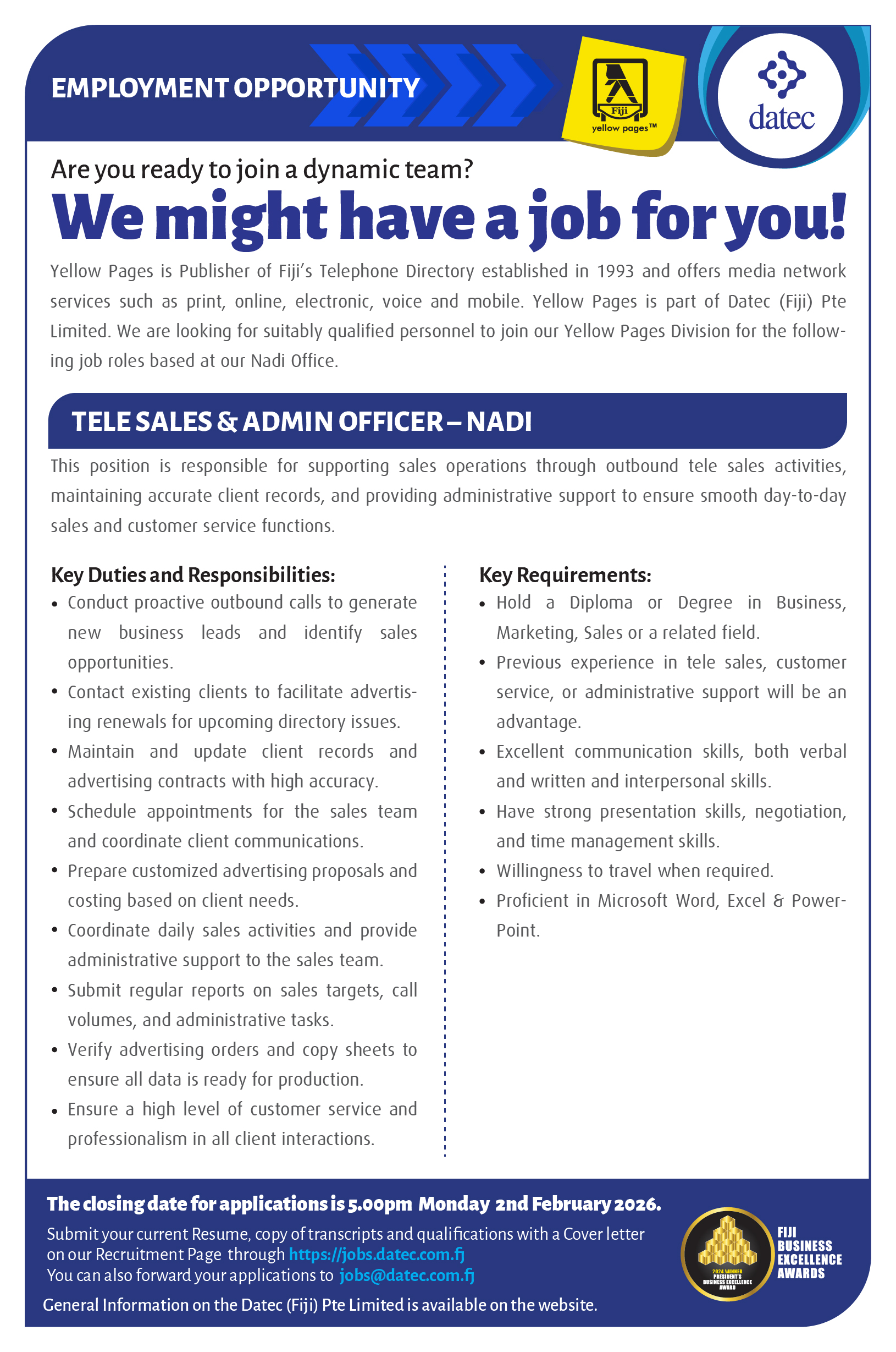 Call Us: +679 331 4411    Email Us: jobs@datec.com.fj